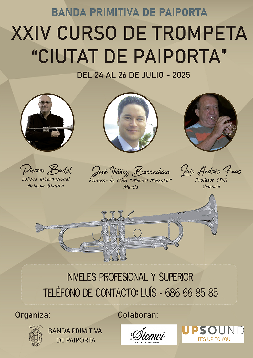 Un año más, Stomvi estara presente en el Curso de Trompeta "Ciutat de Paiporta" acompañando a Pierre Badel con una exposición de instrumentos y accesorios.