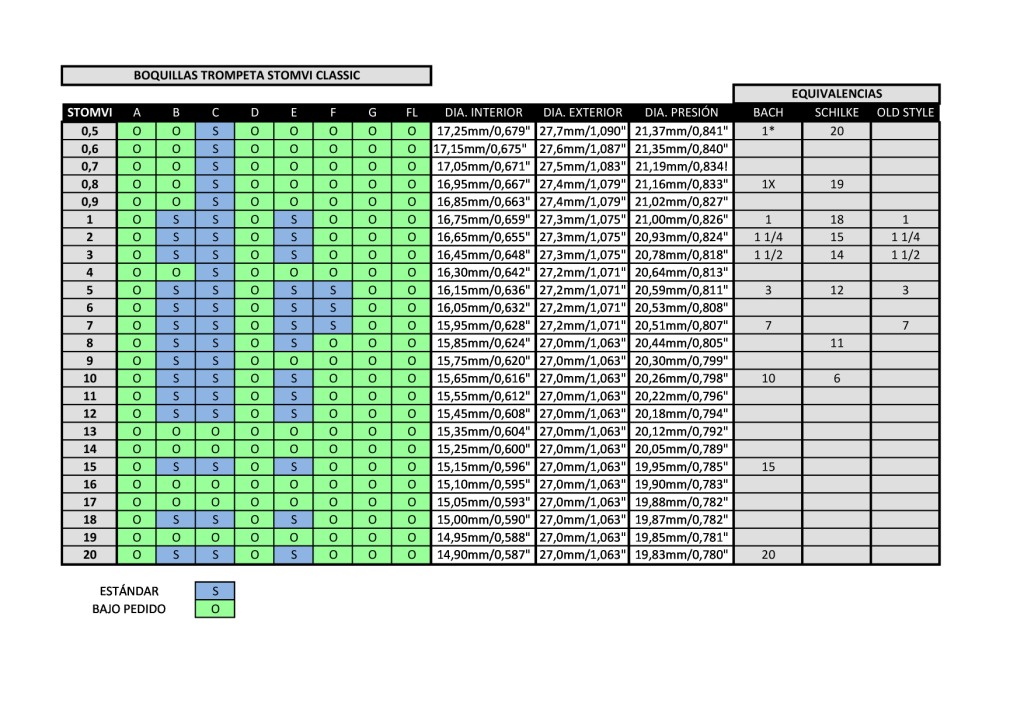 Stomvi Old Style mouthpieces equivalences