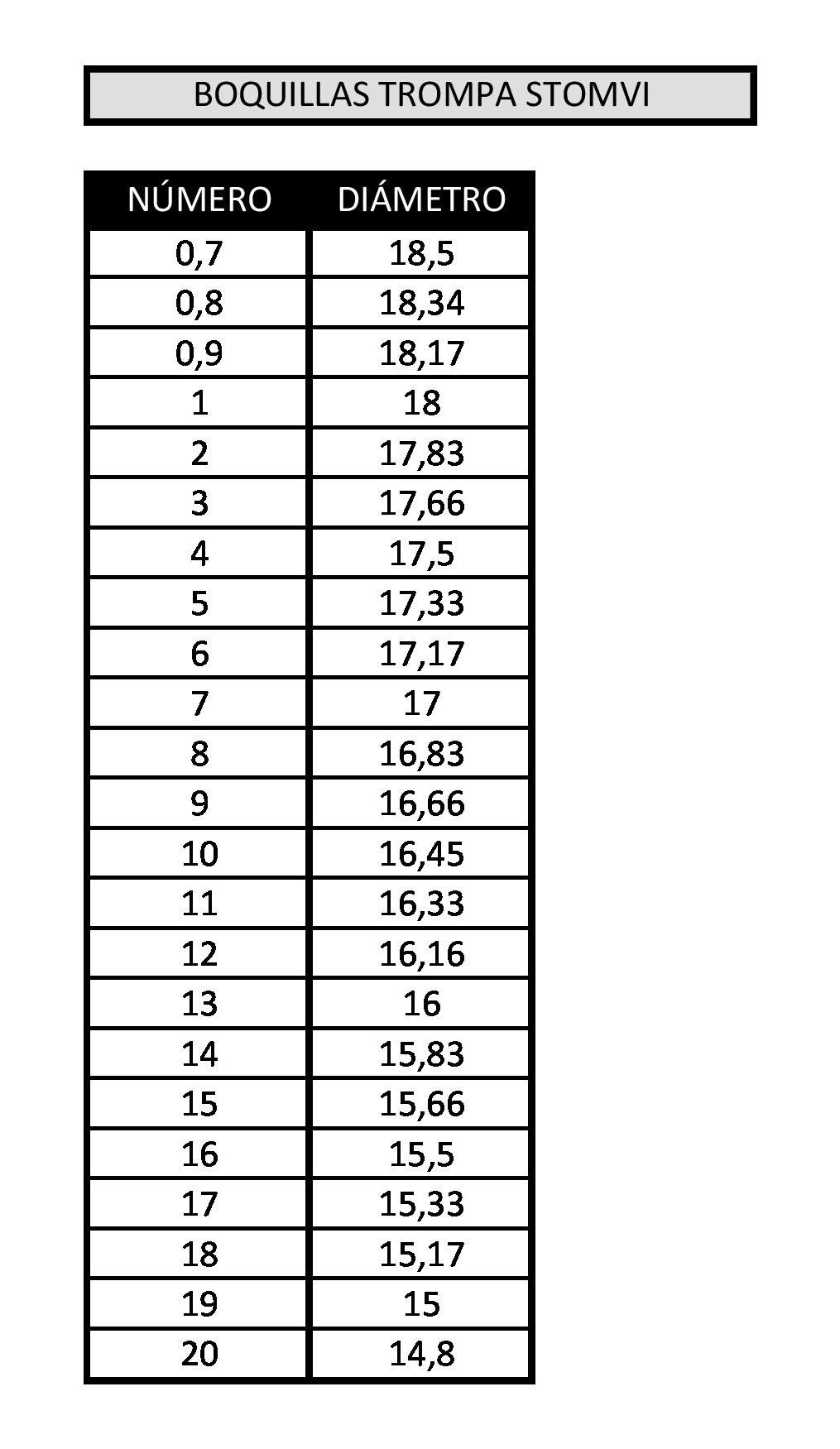 Stomvi Classic mouthpieces equivalences