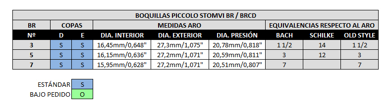 Stomvi ha desarrollado el concepto BR y ha sido aplicado a la boquilla de piccolo. El resultado es un menor esfuerzo así como un aumento de la calidad sonora. Un concepto diferente y revolucionario.
