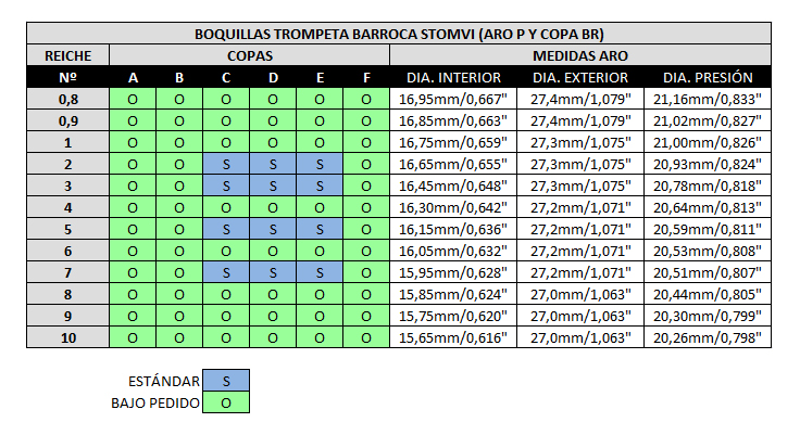 Tabla equivalencias boquillas trompeta barroca:![]()
